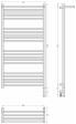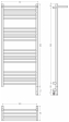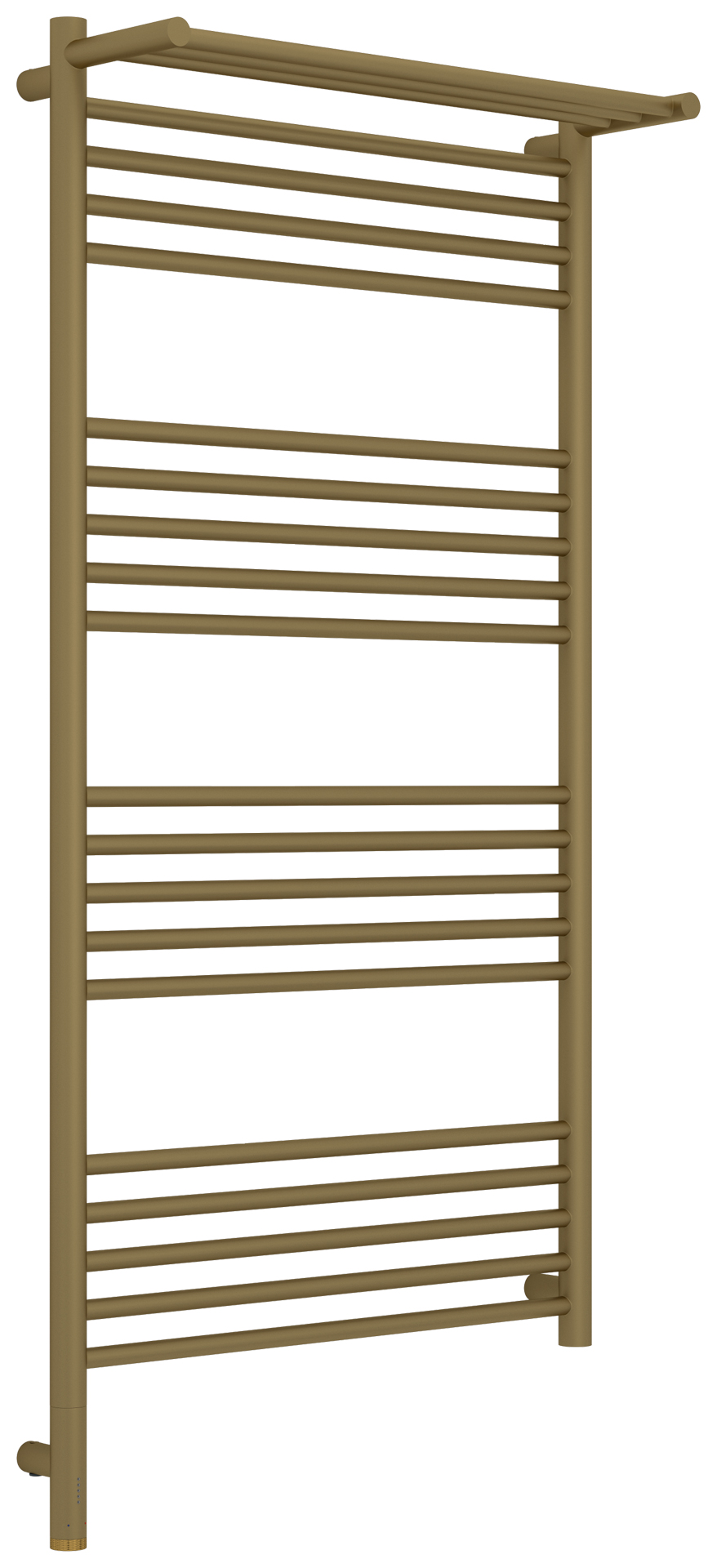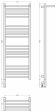 Управление происходит с помощью эстетичного поворотно-нажимного элемента – он позволяет регулировать температуру в диапазоне от 40 до 60°С, выставлять таймер отключения прибора и переводить полотенцесушитель в режим экстра сушки.