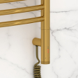 Управление происходит с помощью эстетичного поворотно-нажимного элемента – он позволяет регулировать температуру в диапазоне от 40 до 60°С, выставлять таймер отключения прибора и переводить полотенцесушитель в режим экстра сушки.
