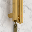 Управление происходит всего одной эргономичной кнопкой – она позволяет регулировать температуру в диапазоне от 40 до 60°С, выставлять таймер отключения прибора и переводить полотенцесушитель в режим экстра сушки.
