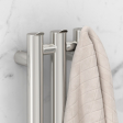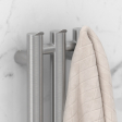 Управление происходит с помощью эстетичного поворотно-нажимного элемента – он позволяет регулировать температуру в диапазоне от 40 до 60°С, выставлять таймер отключения прибора и переводить полотенцесушитель в режим экстра сушки.